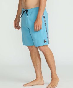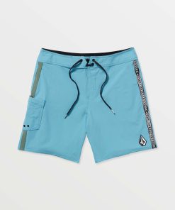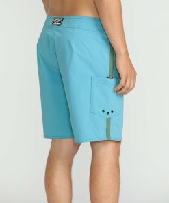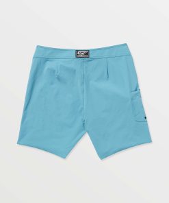 Flexible nylon-stretch blend boardshorts with 18" moveable length, cinch fly, side pocket and signature branding.