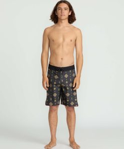 Eco-friendly recycled blend boardies with signature cinch fly closure. 19" outseam with back patch pocket. Iconic rear patch branding.