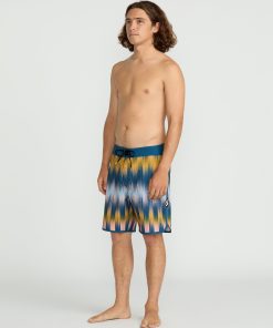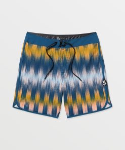 Polyester-elastane blend trunks with 19" outseam-perfect for surfing, swimming or beach lounging. Quick-drying, 4-way-stretch fabric with cinch fly stays put while back pocket stashes essentials. Signature Volcom style.