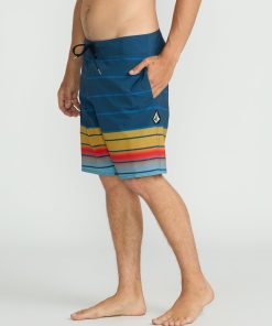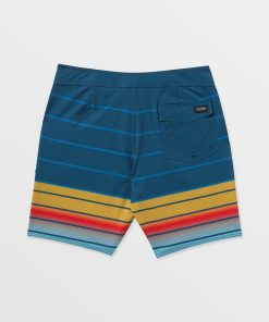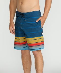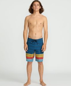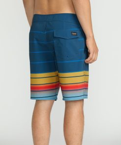 Polyester-elastane blend trunks with sporty 8.75" inseam, back patch pocket, side hand pockets, and cinch fly. Signature woven labels.