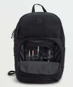 Whether around campus, on the train, or clocking in, stay organized on the go with this stylish and functional backpack from Volcom. Crafted in durable 100% polyester, it features double main compartments, a padded laptop sleeve, and pockets for small essentials. Side water bottle holders and padded shoulder straps off