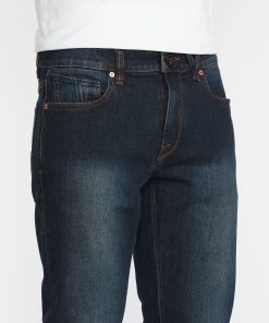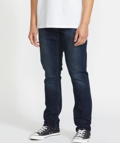 A slim, sleek fit that lives on the edge. Signature Volcom styling meets stretch-blend denim for mobility. Cool, lived-in enzyme wash with low-water production. Straight leg jeans that move as freely as you do.