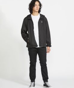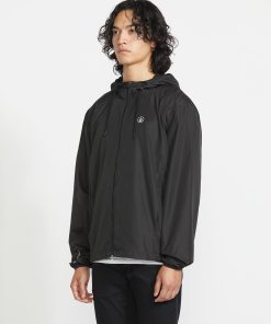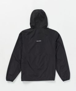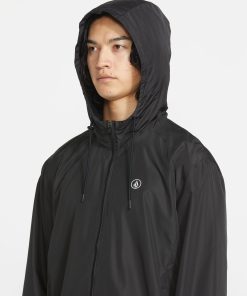 A sporty, water-resistant polyester blend jacket with a DWR finish, relaxed fit, and adjustable hood. Branded Volcom design with zip front, hand pockets, and elastic details.