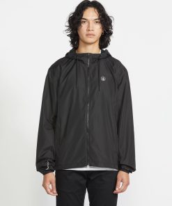 A sporty, water-resistant polyester blend jacket with a DWR finish, relaxed fit, and adjustable hood. Branded Volcom design with zip front, hand pockets, and elastic details.