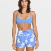 Insanely soft viscose-elastane jersey blend hugs curves. Fitted baby tee with branded chest graphic serves casual, California surf vibes. Striped interior neck taping and contrast shoulder seams add stylish edge. Cropped length complements high-waisted bottoms.