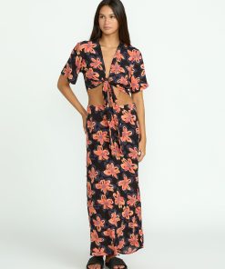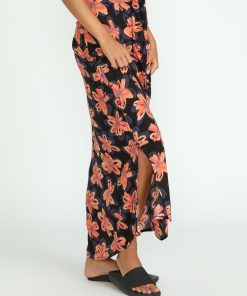 This breezy midi skirt captures carefree tropical charm in a lightweight viscose blend. Its printed pattern, side button-placket, and darts flatter, while a low rise and relaxed fit evoke effortless glamor.