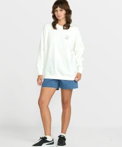 Brushed fleece blend perfects laid-back cool in this boyfriend-fit crew. Screen-printed logos lend branded style to the casual, cozy vibe.
