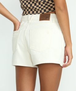 Subtle signature denim branding elevates these 100% cotton corduroy stunners. High rise, slim fit with 2.5" inseam flatters while zipper fly offers easy convenience.